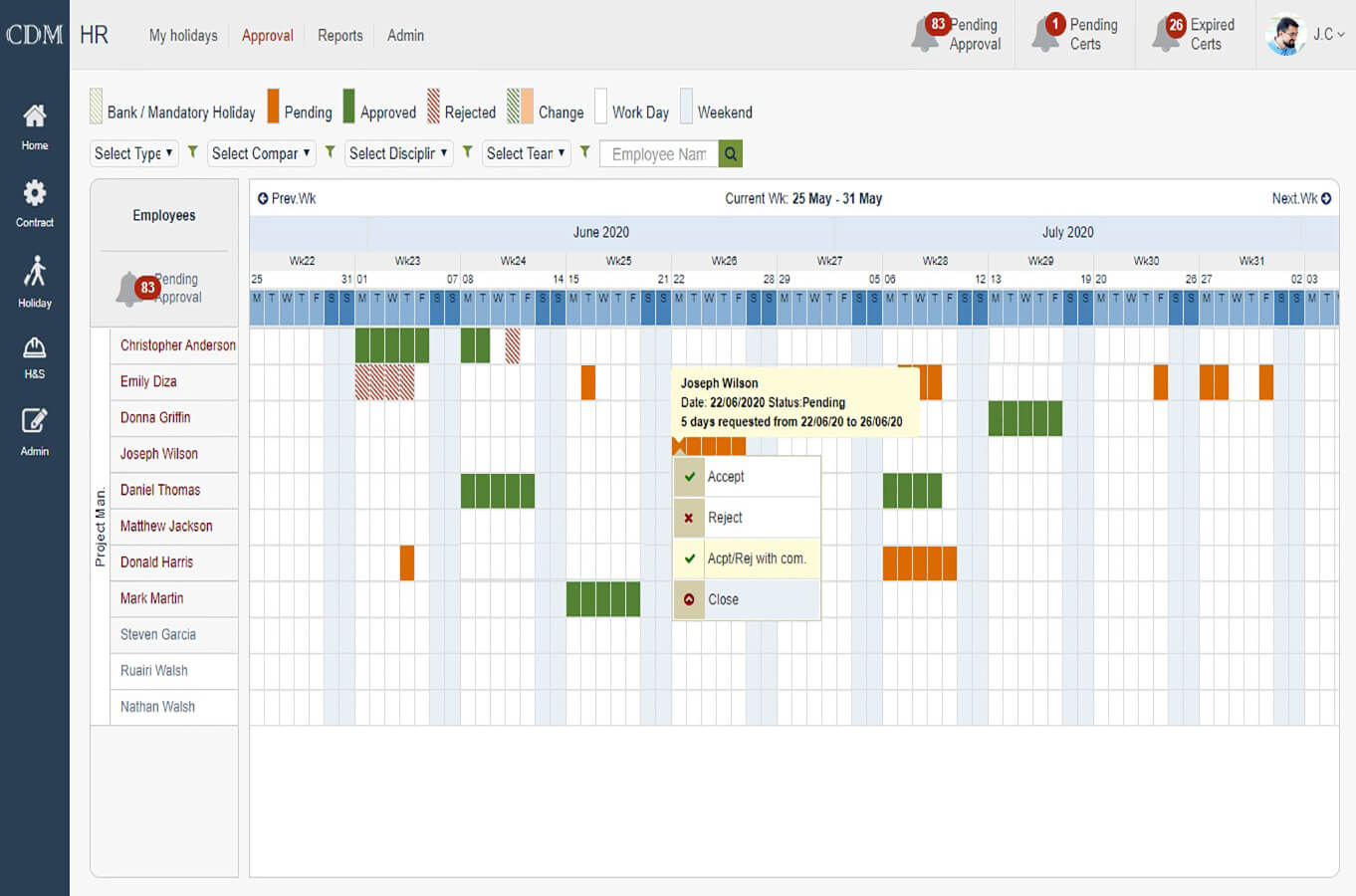 Get a clear view of available resources, see who and when staff are taking holidays.