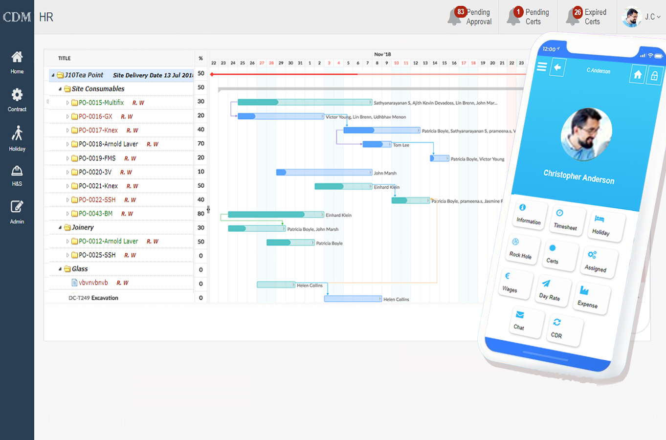 High level real-time reporting empowers senior management to be in control of all aspects of the business and make correct decisions to deliver projects on time and within budget.